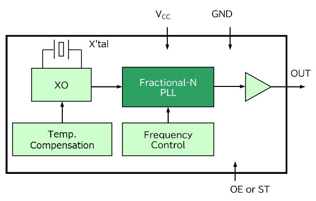 1,通過溫度補償功能在寬溫度范圍內保持高頻率穩定性