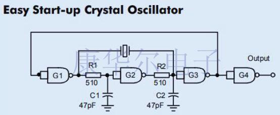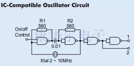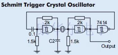 施密特觸發(fā)器提供良好的輸出平方,有時(shí)甚至不需要額外的輸出級.為防止雜散振蕩,請確保C2=1/1x104(頻率以Hz為單位).