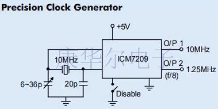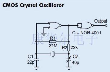 該電路的頻率范圍為0.5MHz至2.0MHz.可以使用微調(diào)電容器C2將頻率調(diào)整為精確值.第二或非門用作輸出緩沖器.