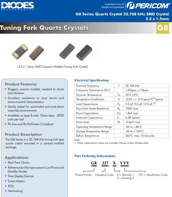 3215mm/G83270025/智能電表專用/32.768KHZ/Diodes/G8 參數表